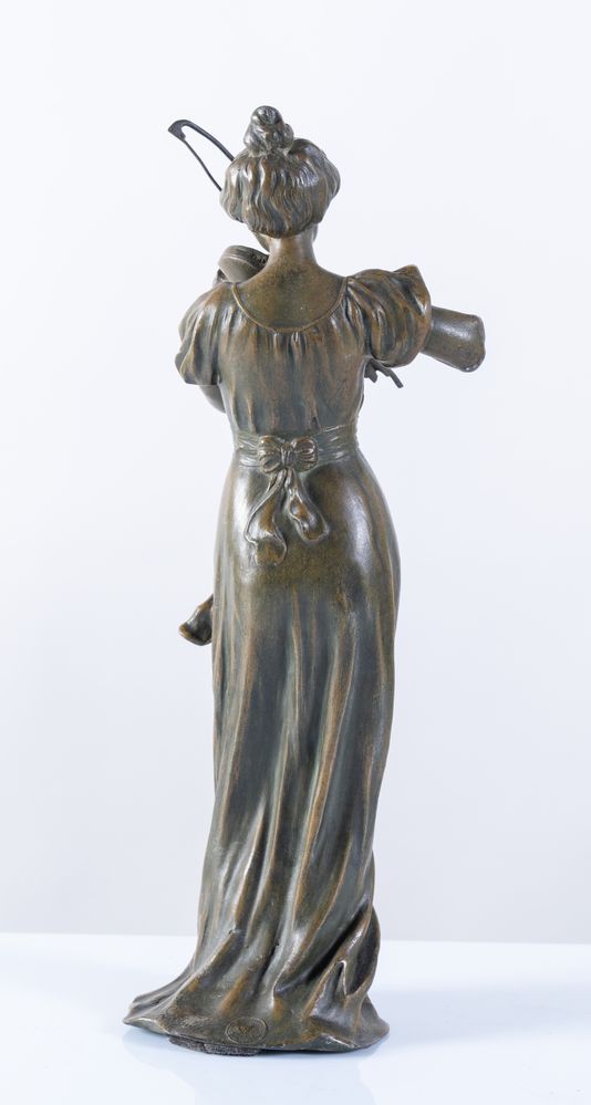 JEAN-LOUIS GRÉGOIRE (Parigi 1840 - 1890). Scultura in bronzo raffigurante giovane donna che suona il violino. Cm 35x12x14. Al retro della base firma Grégoire e marchio della fonderia.