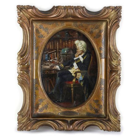 Lord Selford entro studio inizio XX secolo dipinto ad olio su tavola 23,5 x 17, 5 cm