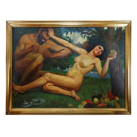 EUGENIO CITRINITI (Catanzaro, 1897 - ) Baccante con satiro prima metà XX secolo dipinto ad olio su tela 100 x 140 cm