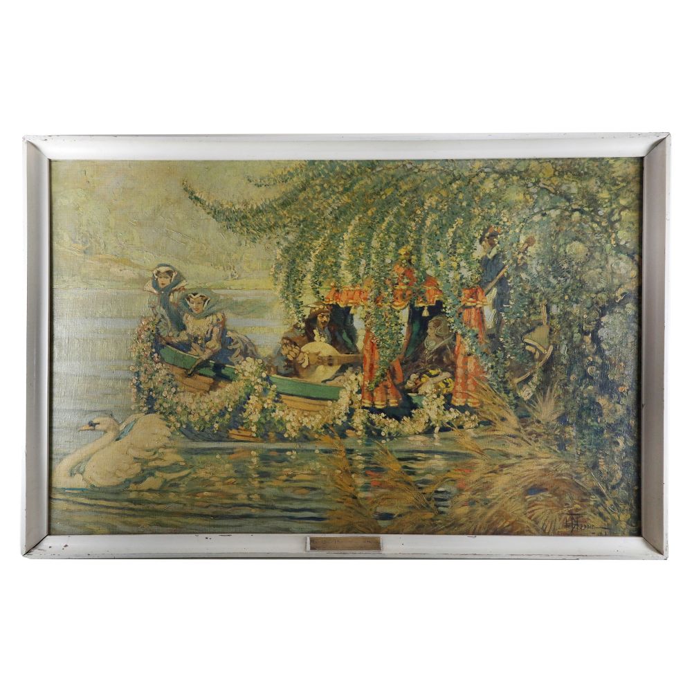 Coppia di scene di genere Scuola inglese prima metà XX secolo dipinto ad olio su masonite 82 x 131 cm