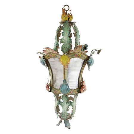 Lanterna in sospensione ad 1 luce in ferro battuto policromo prima metà XX secolo