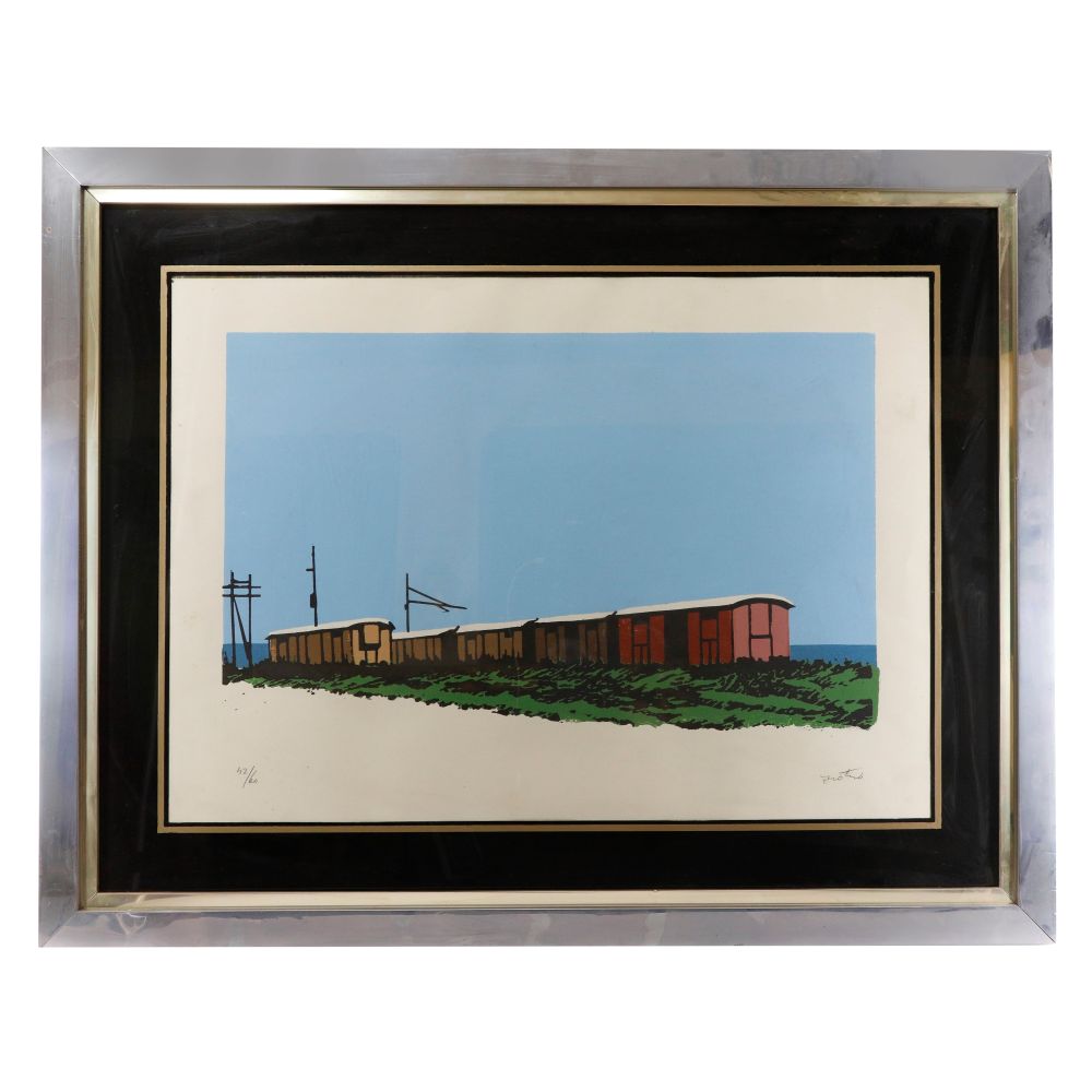 ENOTRIO PUGLIESE (Buenos Aires, 1920 - Pizzo, 1989) Il treno, multiplo su carta 50 x 70 cm