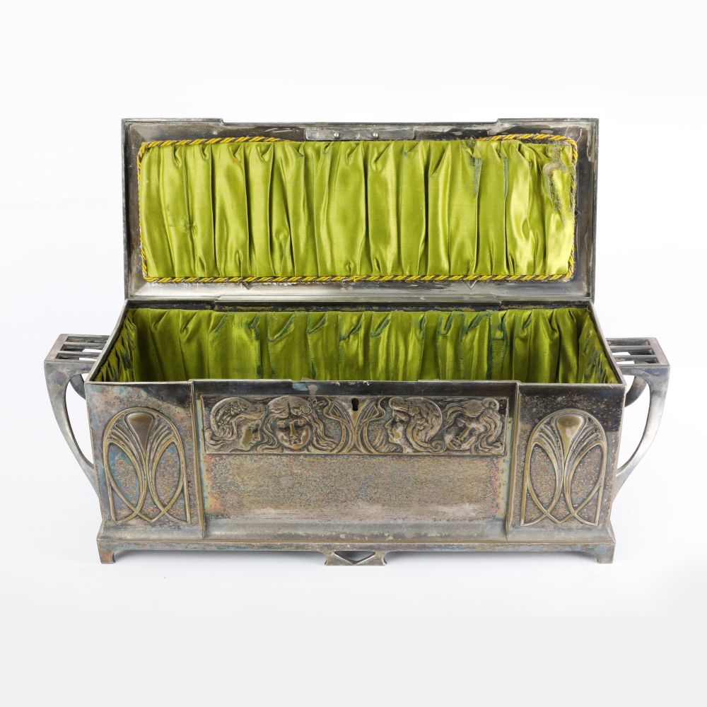 Scatola in metallo argentato Jughenstill inizi XX secolo 20 x 43 x 13,5cm