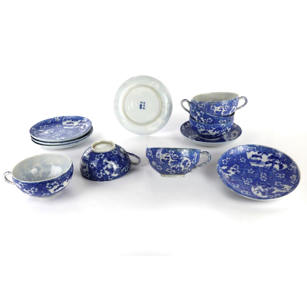 Lotto di 6 tazze da the con 6 sottopiatti Giappone inizi XX secolo