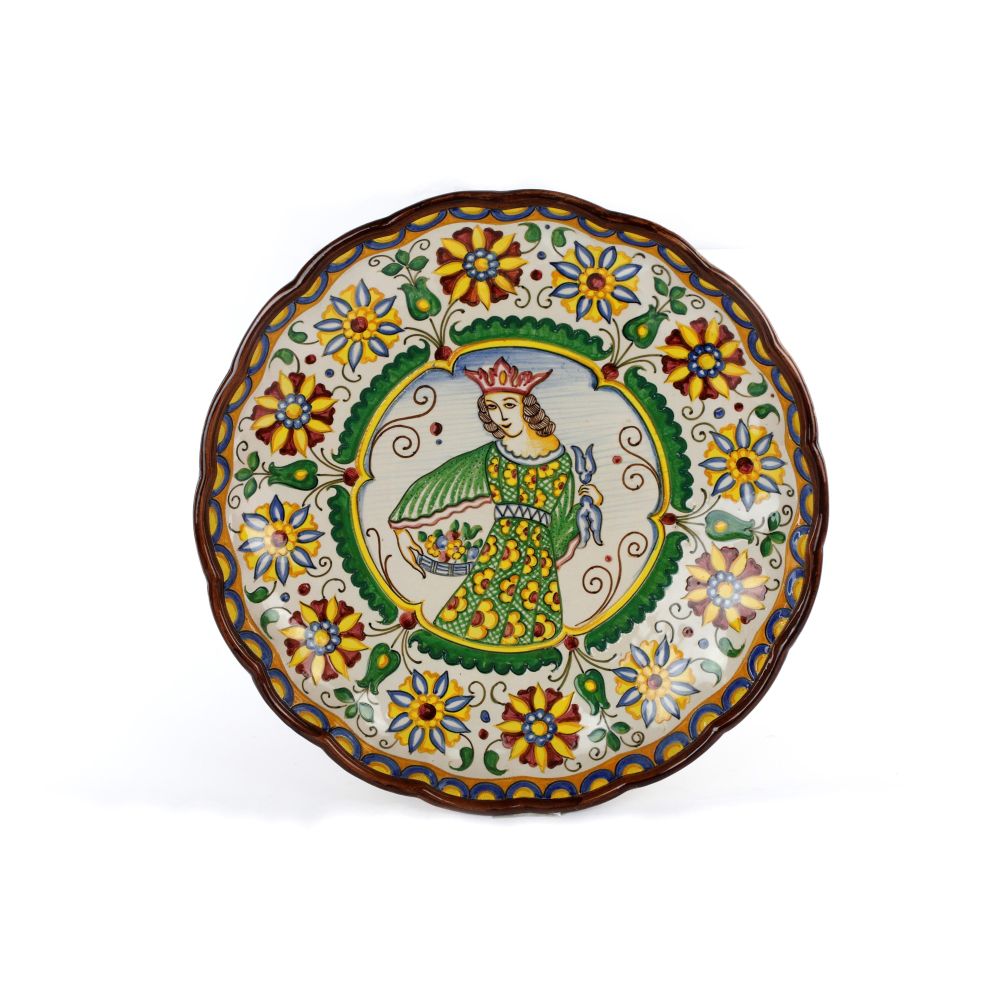 Piatto in ceramica con figura femminile prima metà XX secolo 39 x 6,5 cm