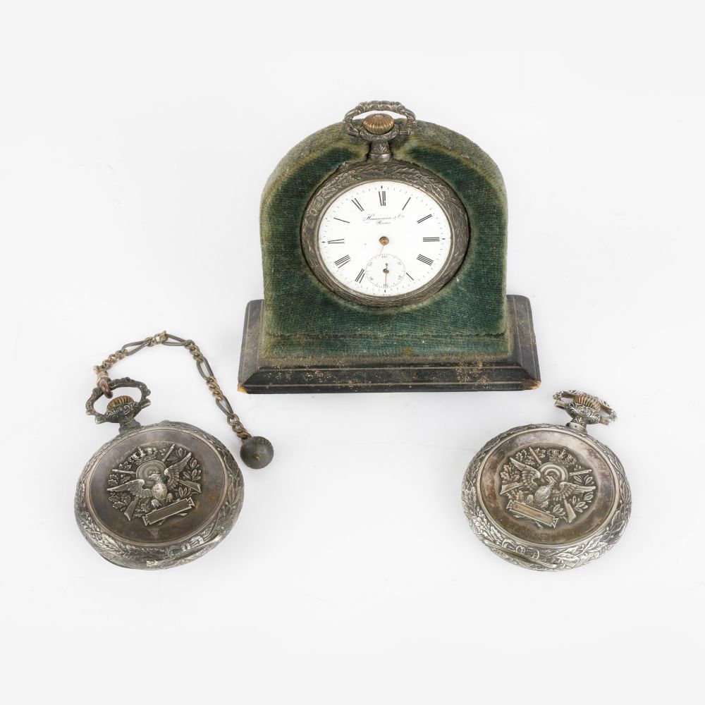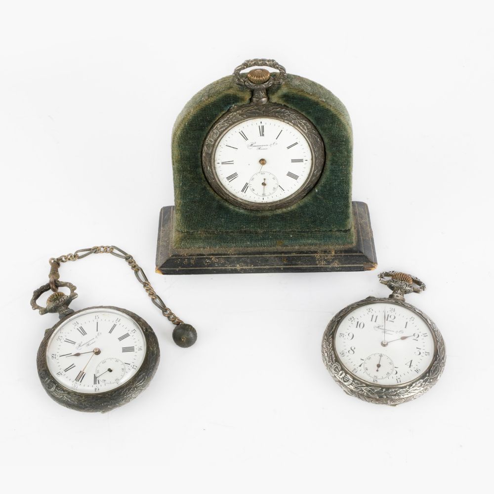 Lotto di 3 orologi da tasca in argento Hausman Roma prima metà XX secolo