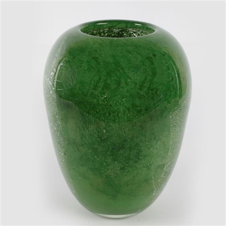 Vaso in vetro verde seconda metà XX secolo 21 x 7 cm