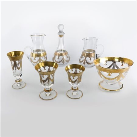 Servizio di bicchieri in cristallo con decoro oro zecchino seconda metà XX secolo