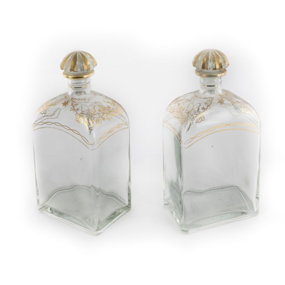 Coppia di bottiglie in vetro con finitura in oro zecchino metà XX secolo