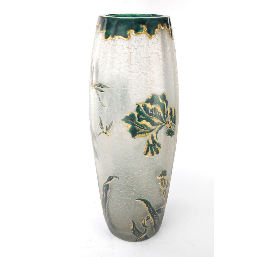 Vaso a cilindro in vetro bianco e verde Francia inizi XX secolo