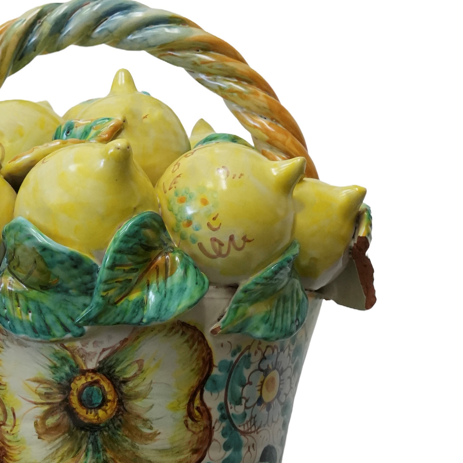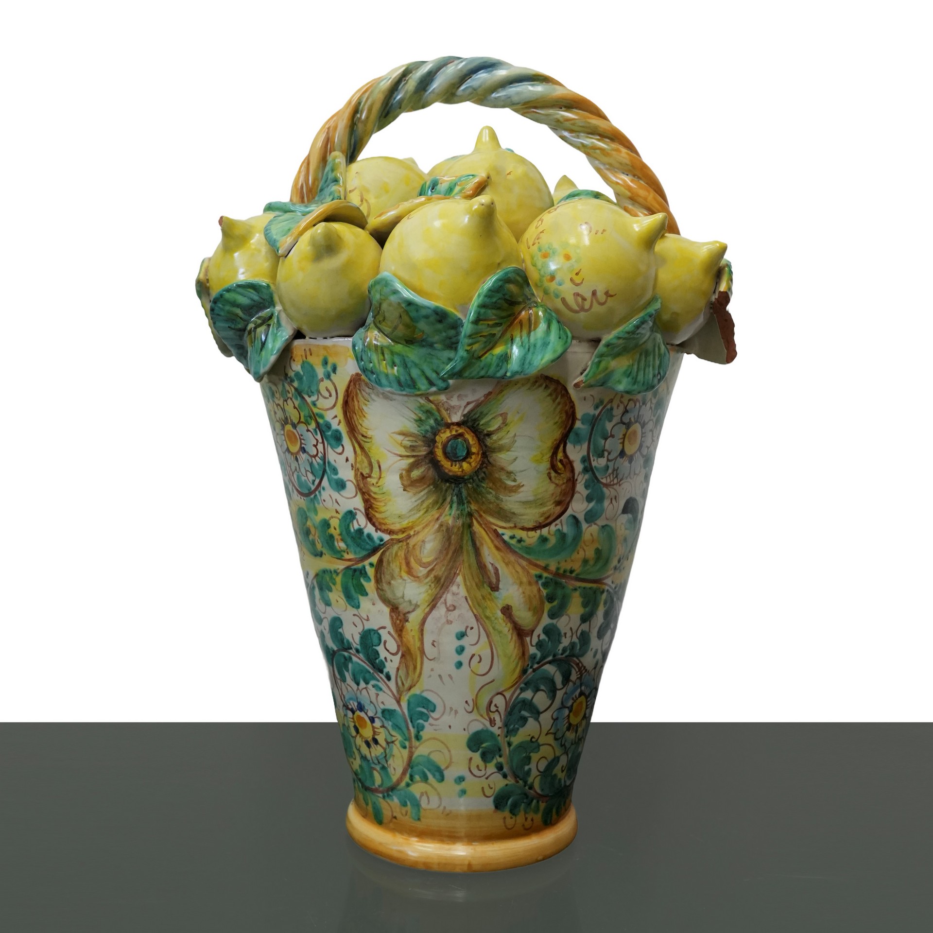 Cesto di limoni in maiolica di Caltagirone H cm 42 Firmato in basso Boria Caltagirone, piccola sbeccatura alla baseFirmato in basso Boria Caltagirone, piccola sbeccatura alla base