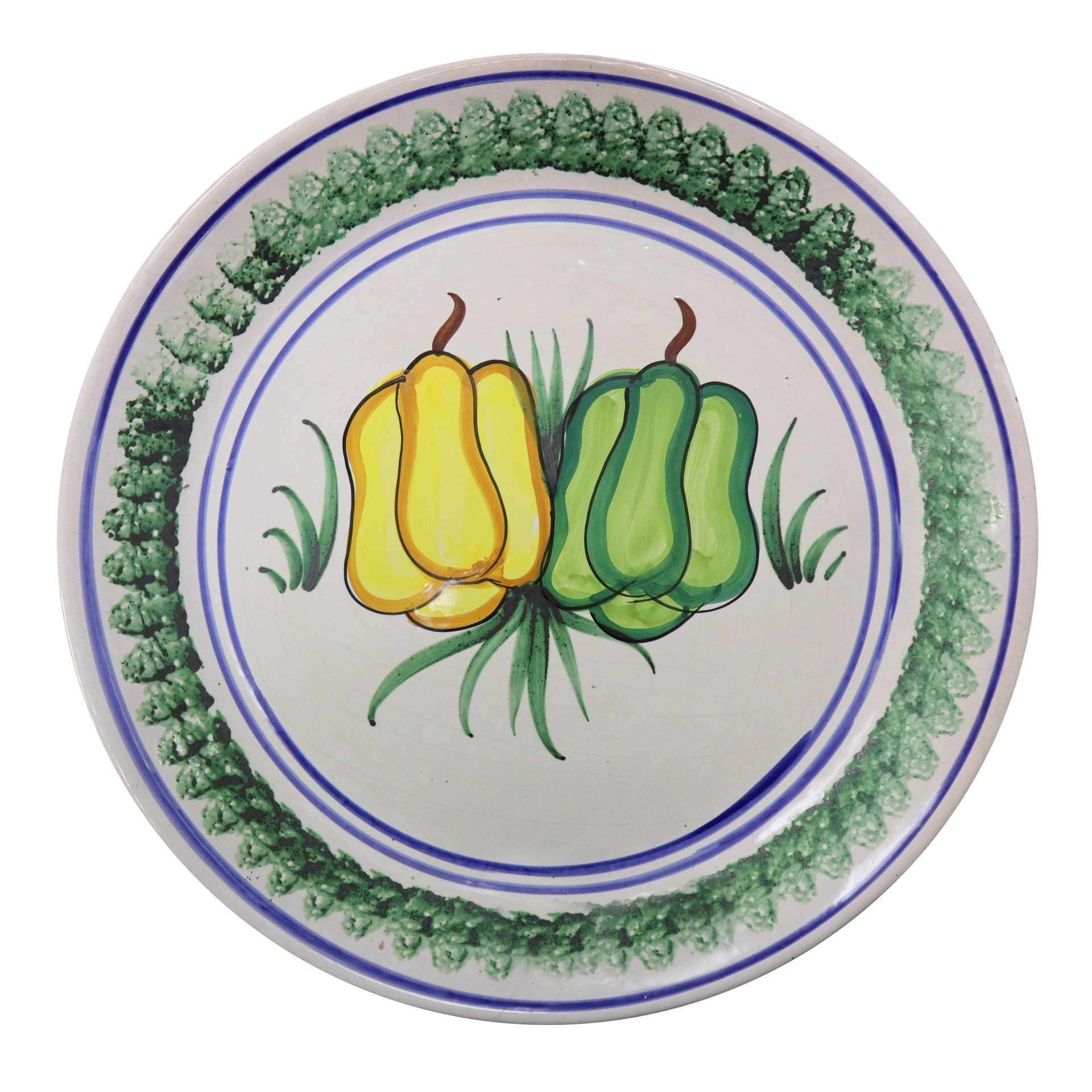 Piatto in maiolica di caltagirone spugnato, dipinto con peperoni, 1970 diamentro cm 46