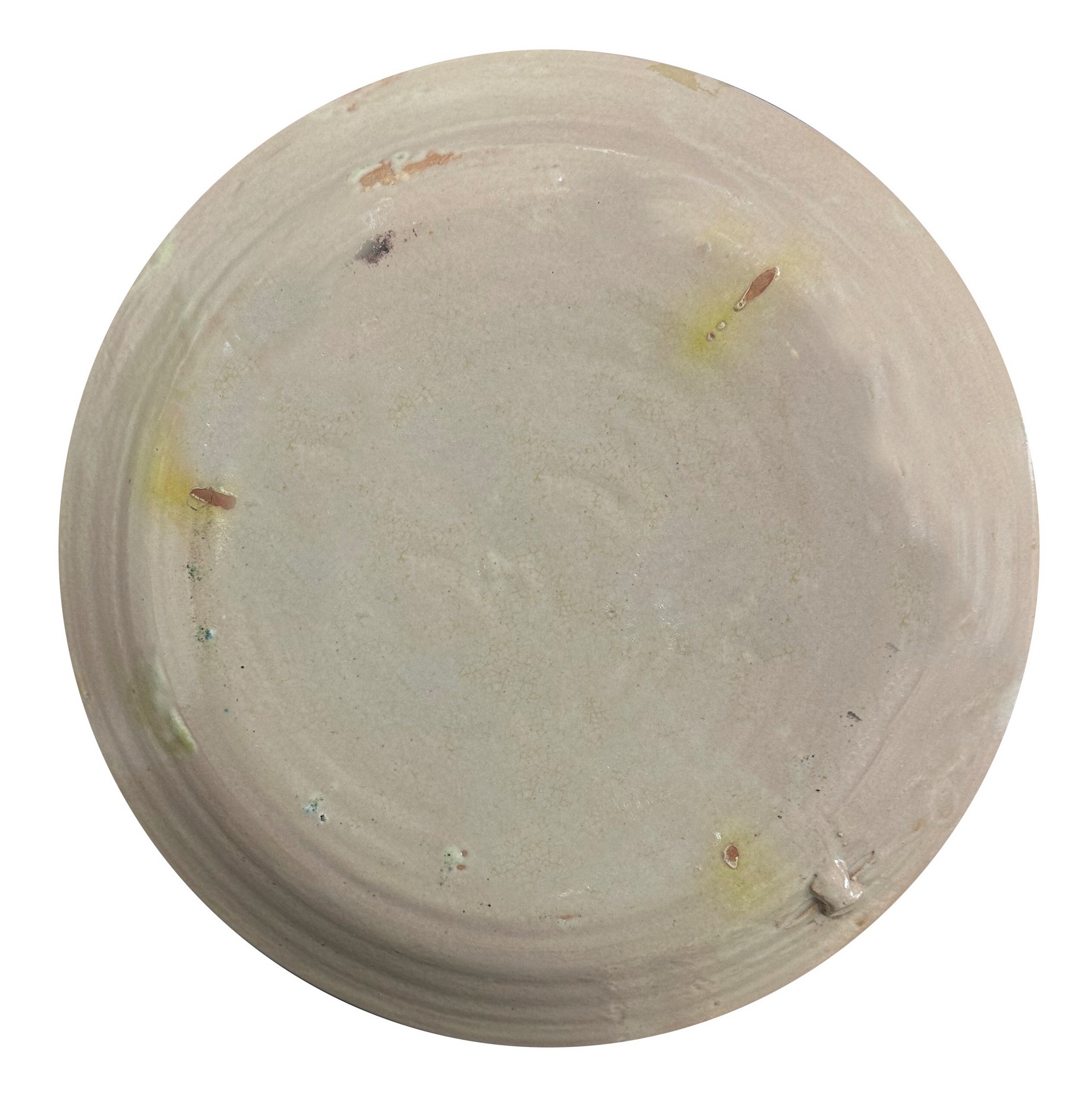 Piatto in maiolica di Caltagirone spugnato arancio con quadrifoglio al centro , 20° secolo diametro cm 36