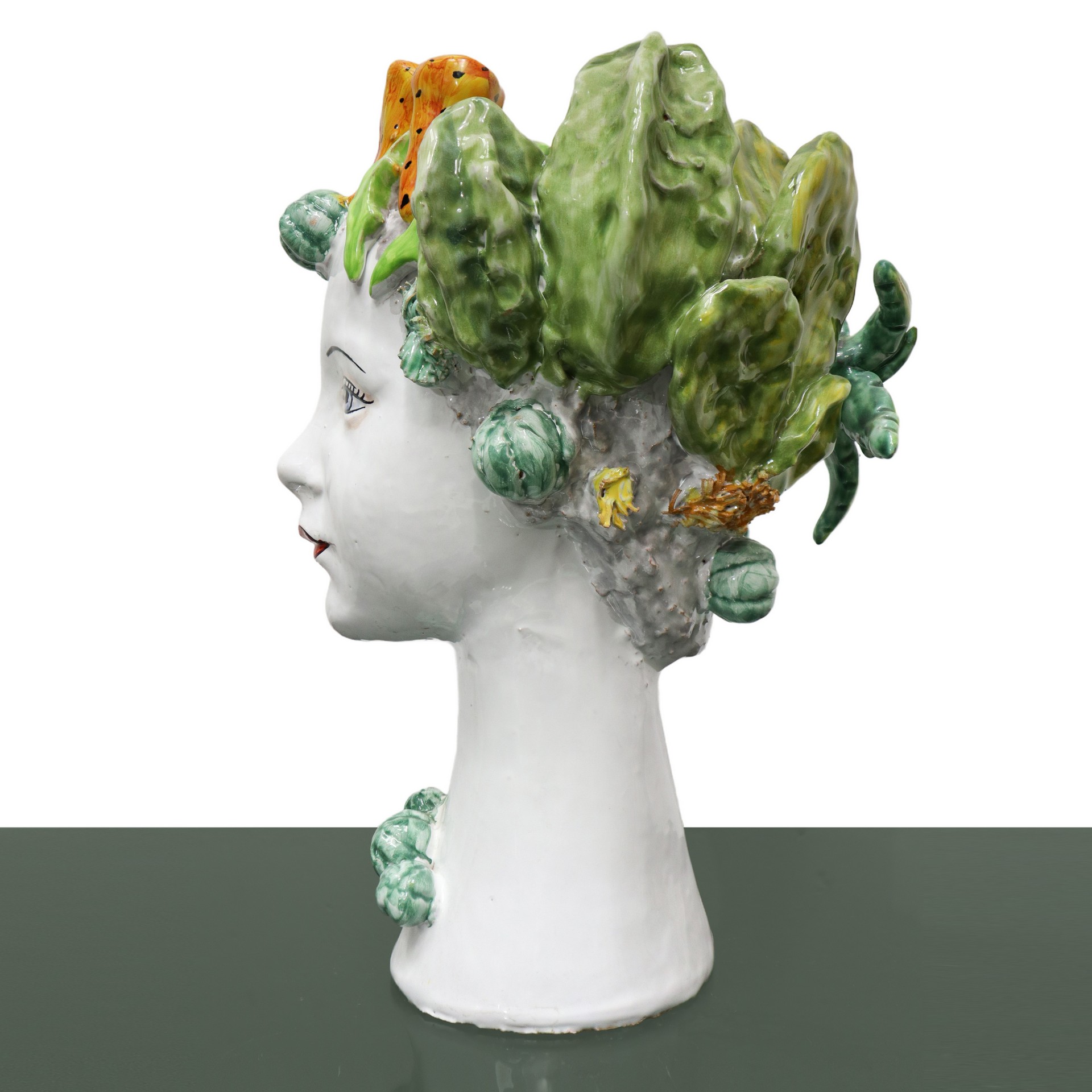 Virginia Casa Hand made in Italy (Toscana) - Testina di donna in maiolica con fichi d'india in testa H cm 31x23 Marchio alla base.Marchio alla base.