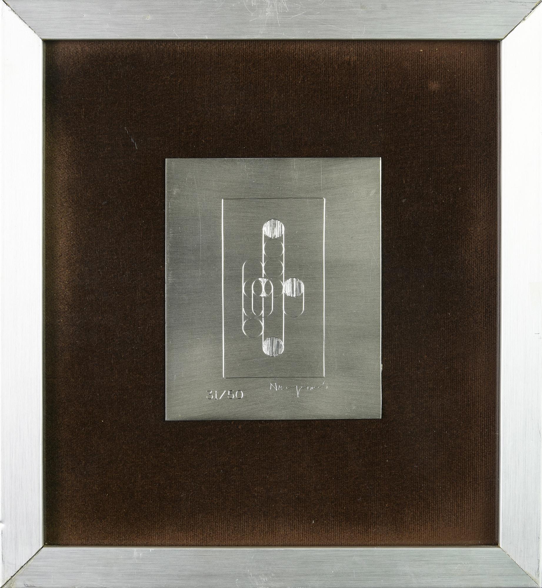 Carlo Nangeroni (1922 - 2018) SENZA TITOLO serigrafia su alluminio, cm 10x8;...