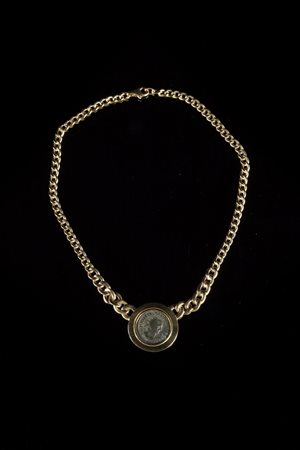 A 750 yellow gold necklace, gr 35,30, bearing an antique Roman medal set in the central area.