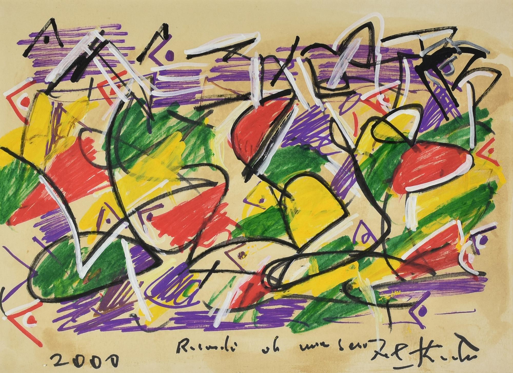 Ibrahim Kodra (1918 - 2006) RICORDO DI UNA SERA, 2000 tecnica mista su carta,...