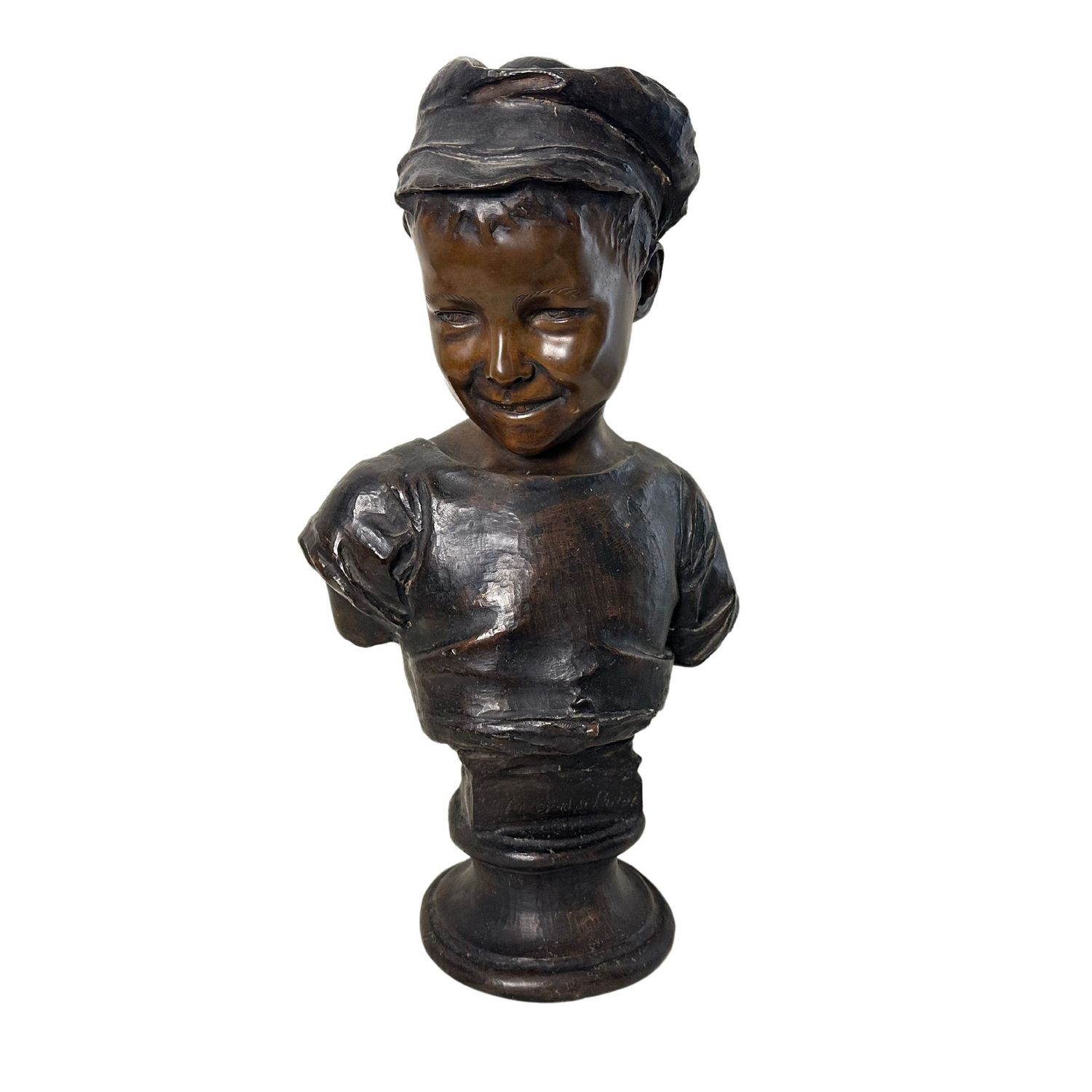 Scultura in bronzo, periodo Francia XX secolo raffigurante Scugnizzo parigino. Firmato sul retro.