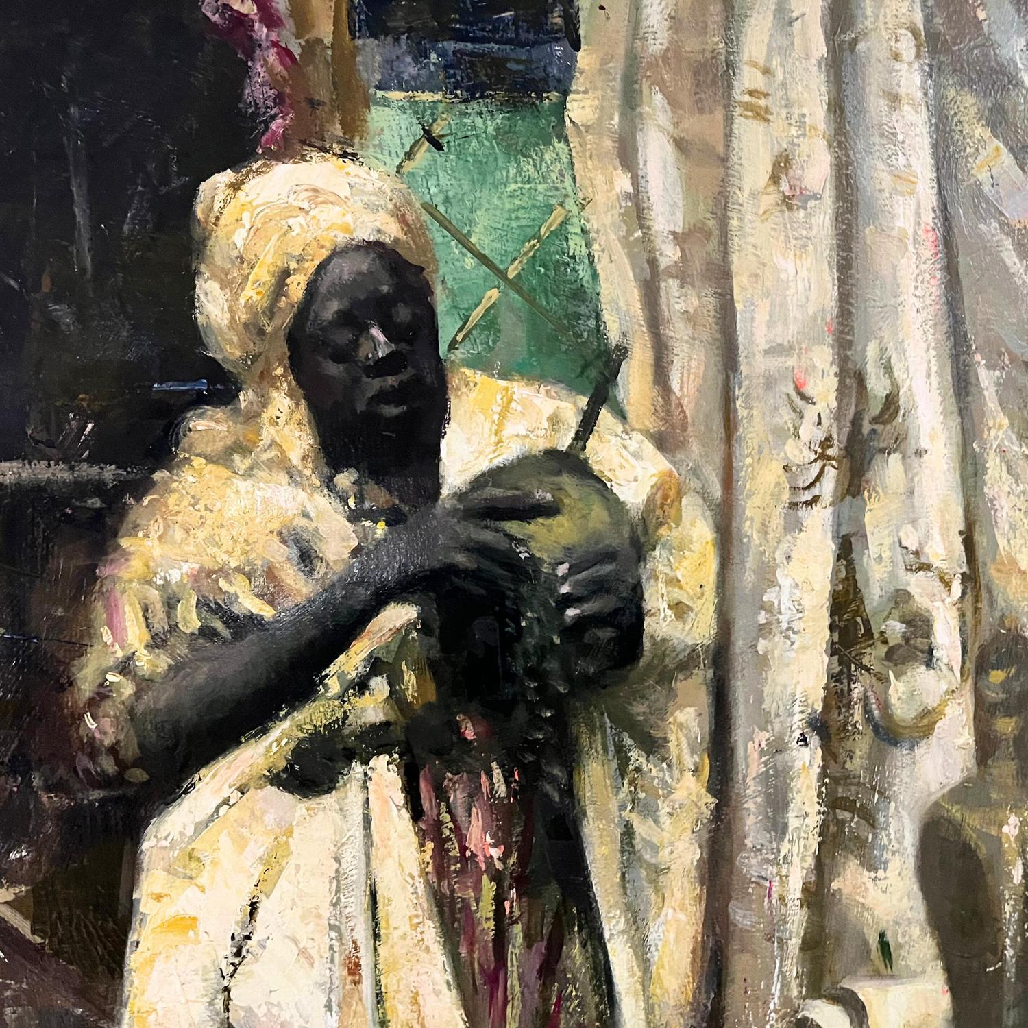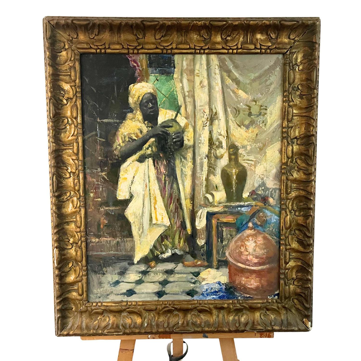 Dipinto olio su tela, raffigurante Venditore Arabo. Copia da Ettore Cercone, XX secolo.