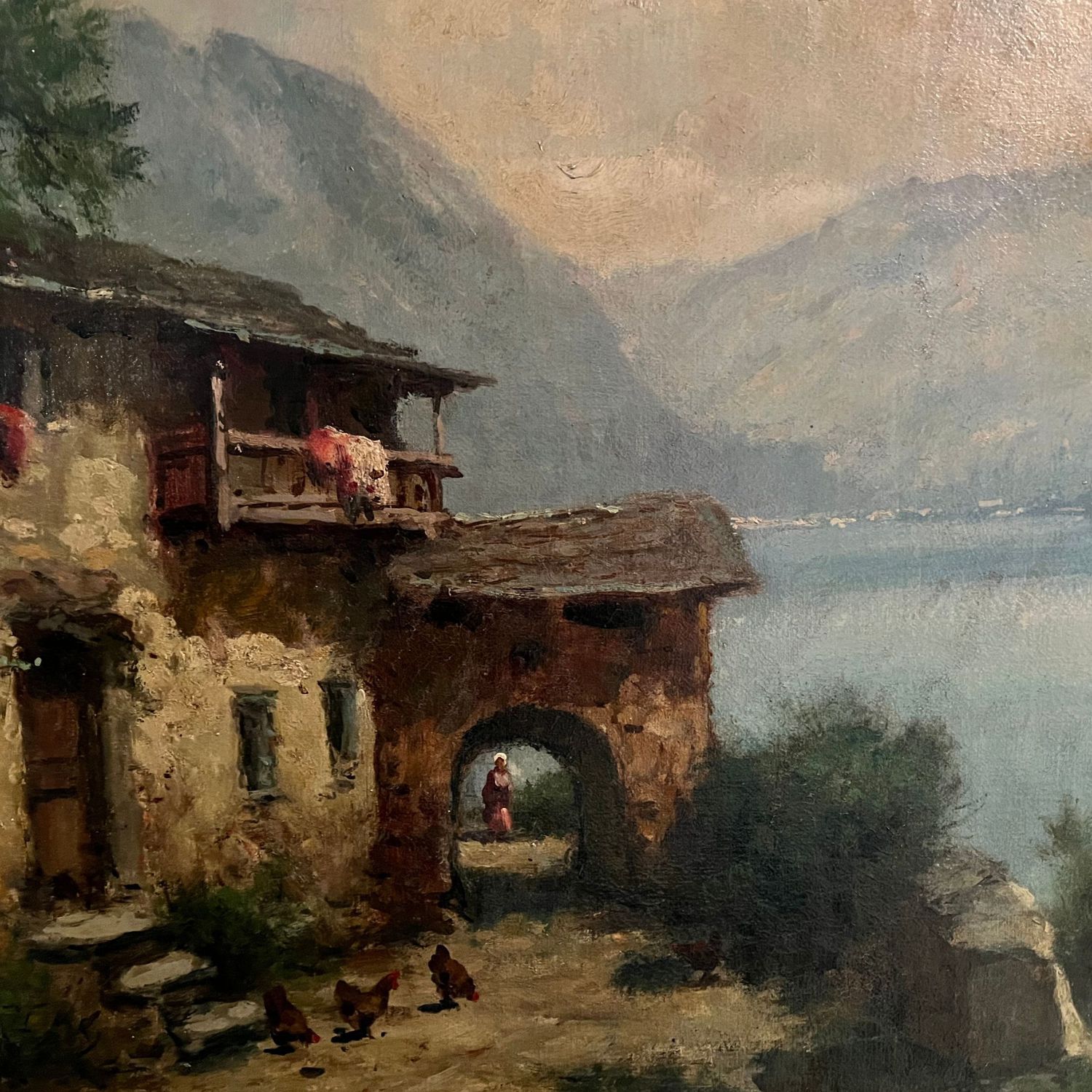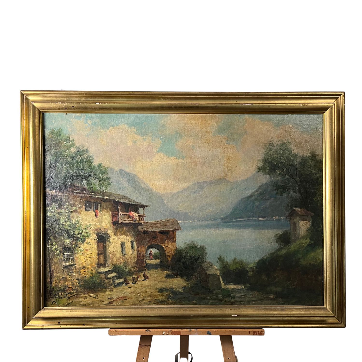 Dipinto olio su tela, XX secolo reca firma Bertini. Raffigurante Paesaggio di montagna con lago. Scuola Italiana.