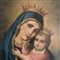 Dipinto olio su tela, raffigurante Madonna e Bambino. Periodo XIX secolo, riparazioni alla tela, piccoli punti di restauro, cornice dorata