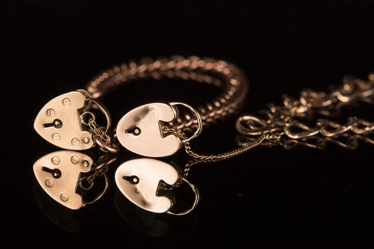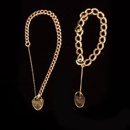 A pair of 375 yellow gold bracelets, gr 29,80, with heart-shaped pendants.