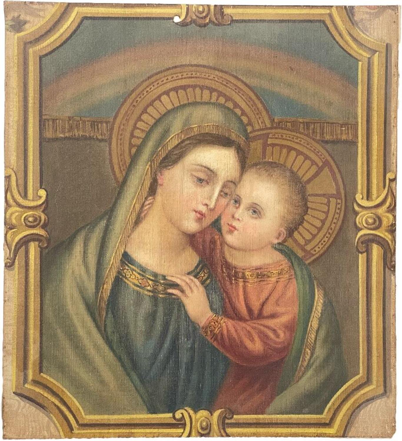 Dipinto olio su tela, Succo d'erba, raffigurante Madonna del Buon Consiglio. XX secolo.