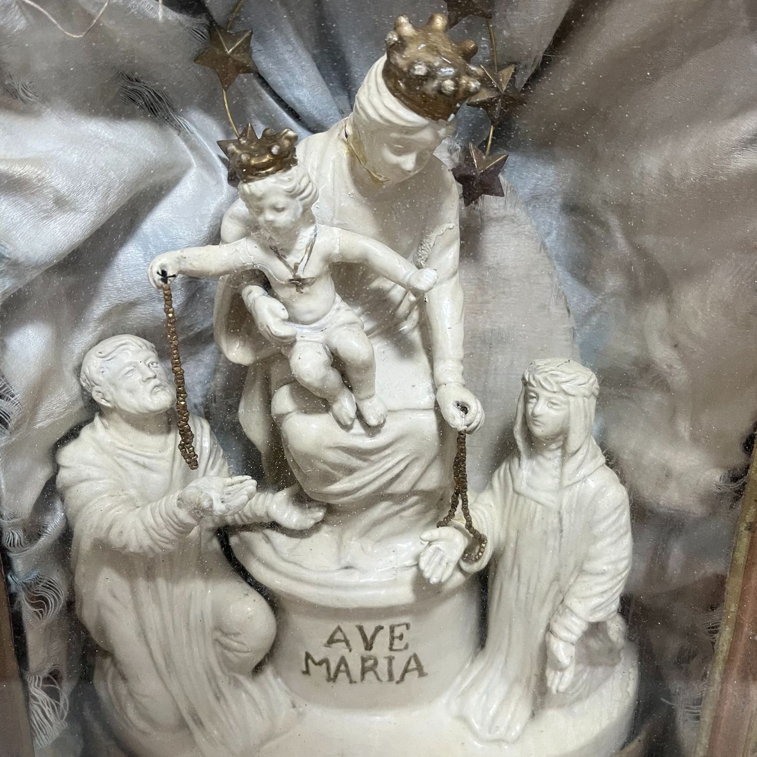 Scultura in terracotta Smaltata Bianca, raffigurante Madonna del Rosario.