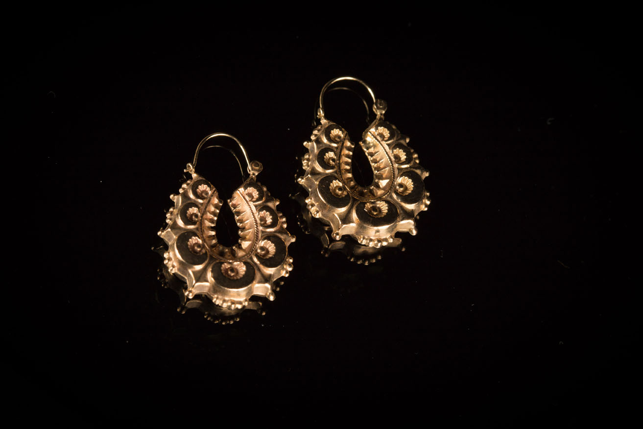 Fine Jewellery Early 20th Century375 yellow wrought gold earrings, gr 5 lxh...
