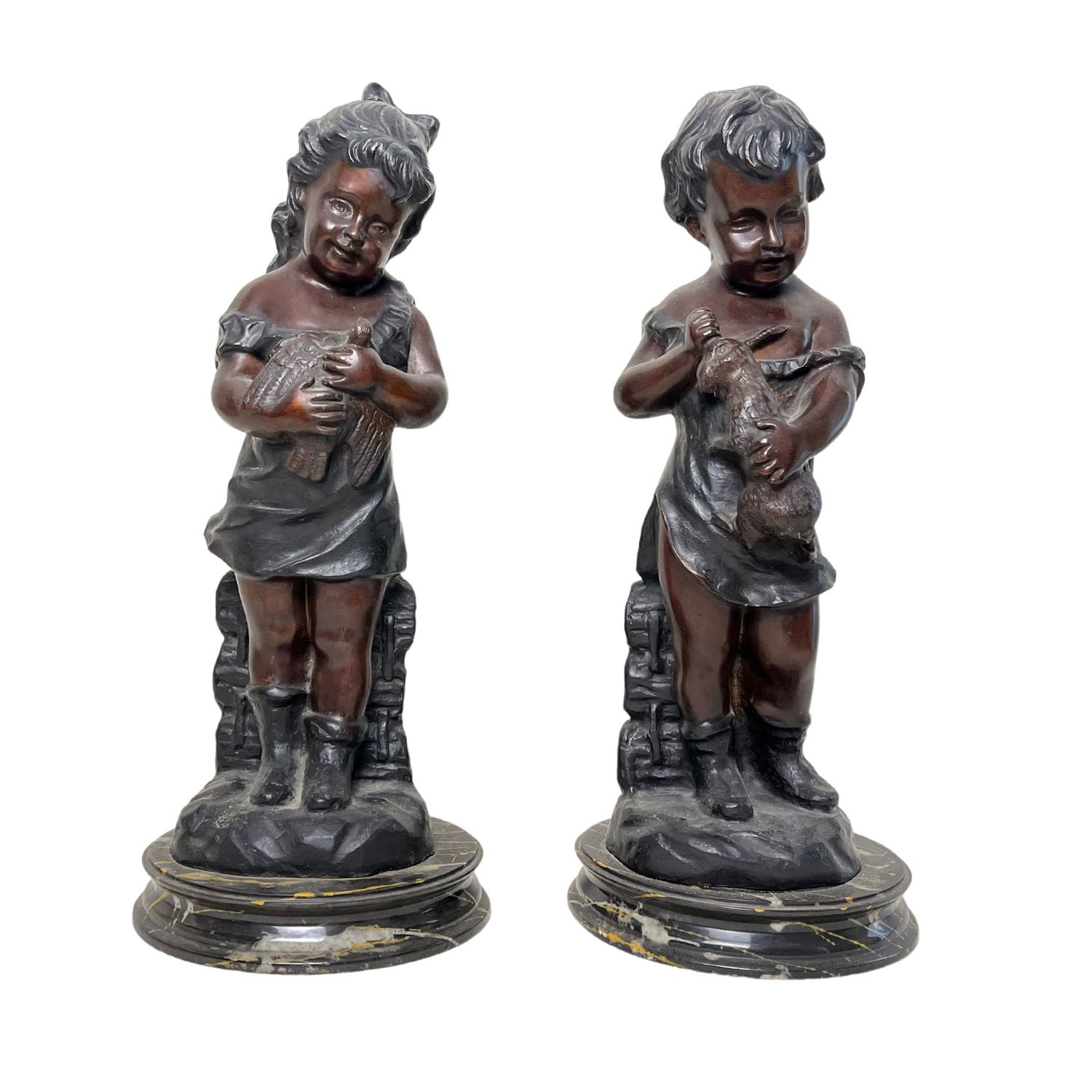 Coppia Bronzi raffigurante Uccello e Cacciagione periodo XX secolo....