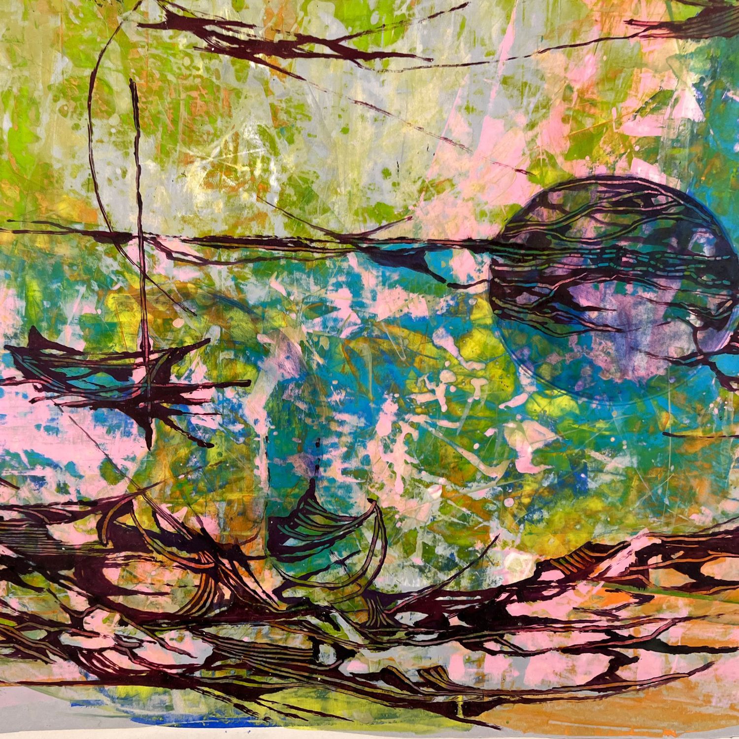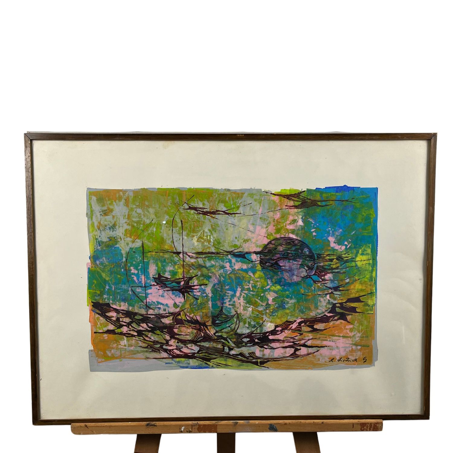 Cromolitografia su carta, periodo XX secolo scuola Europea raffigurazione astratta.