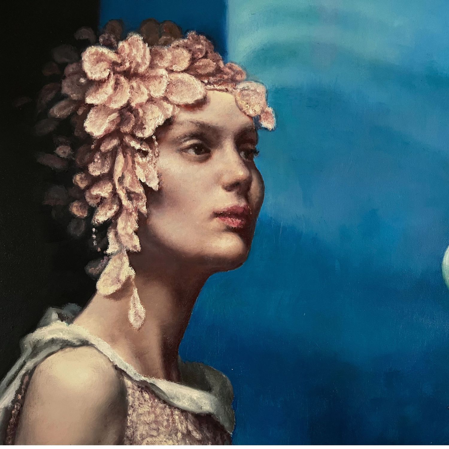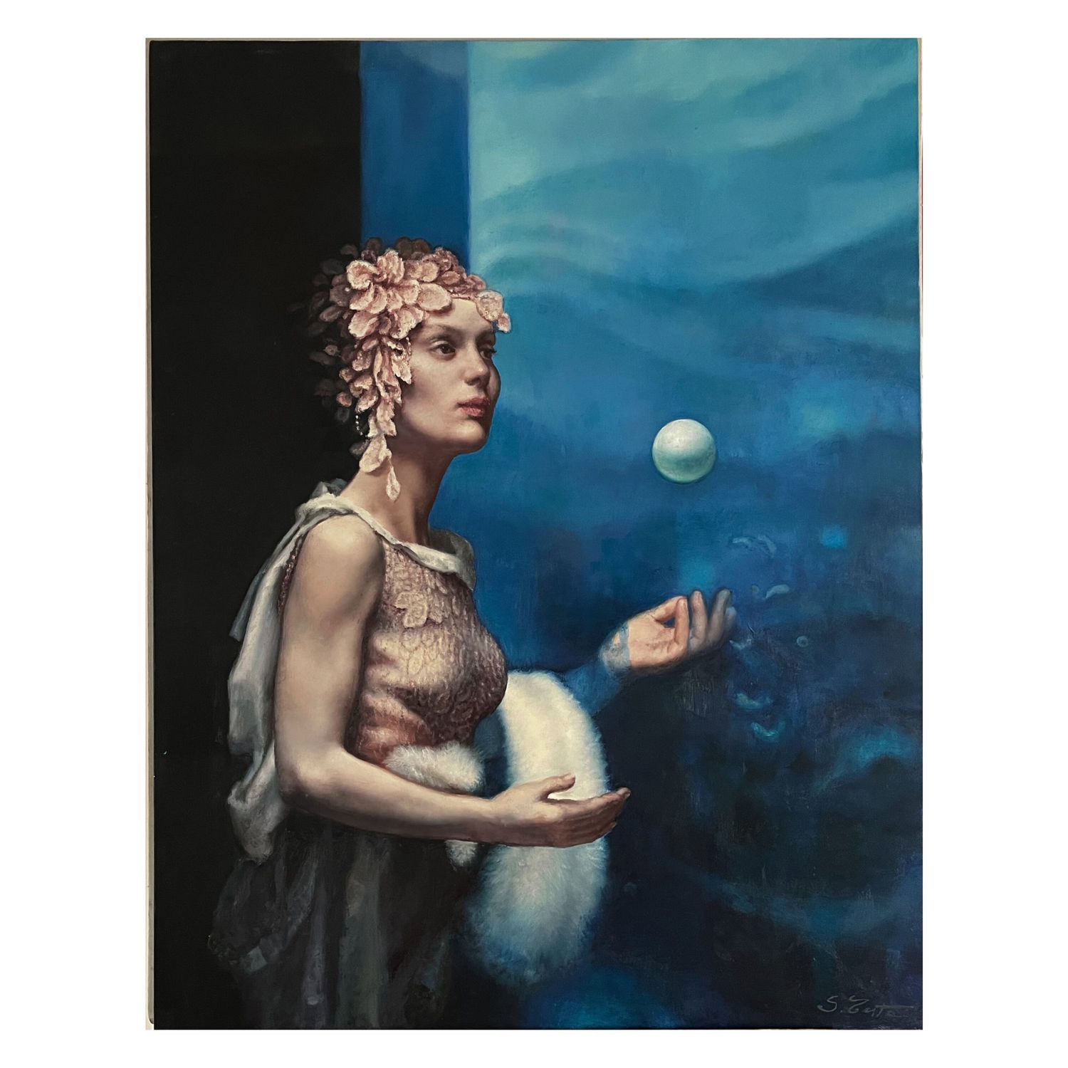 Dipinto olio su tela raffigurante Messaggi astrali. XX/XXI secolo.