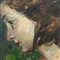 Dipinto olio su tela periodo XX secolo, raffigurante profilo di ragazza, tratta da un'opera di Vincenzo Irolli. 1860-1949.