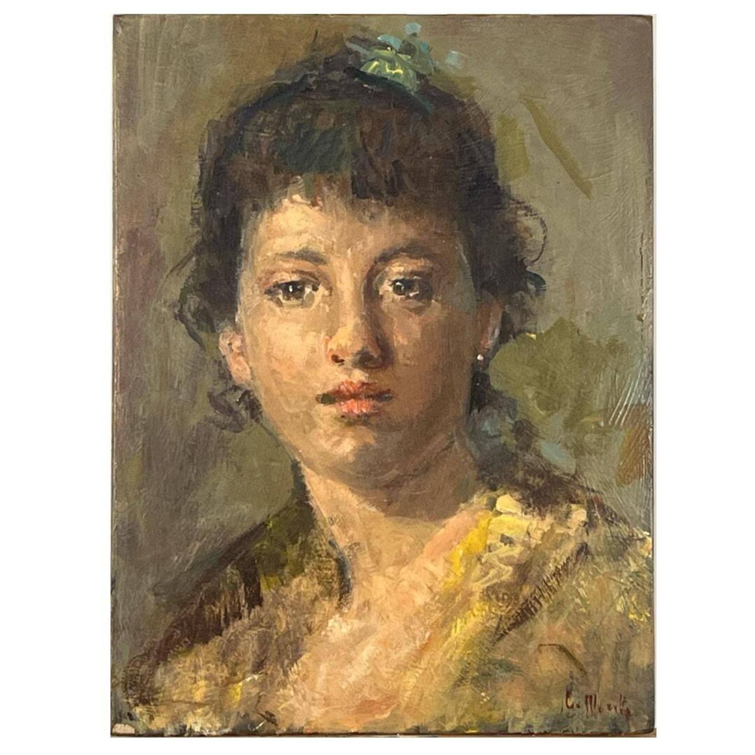 Dipinto olio su tavola, raffigurante Ritratto di Giovane donna. XX secolo.