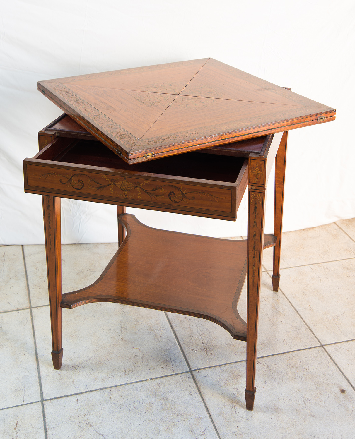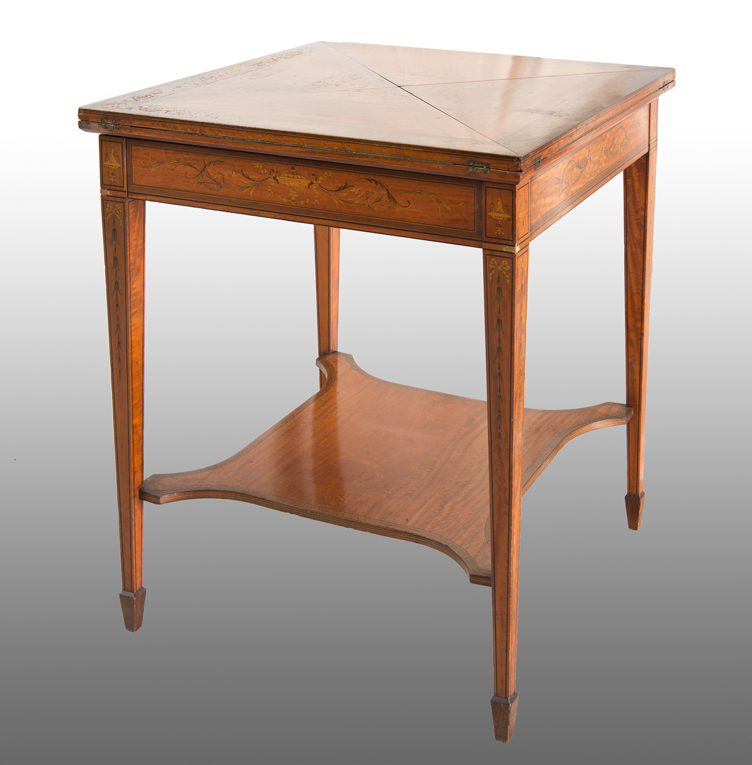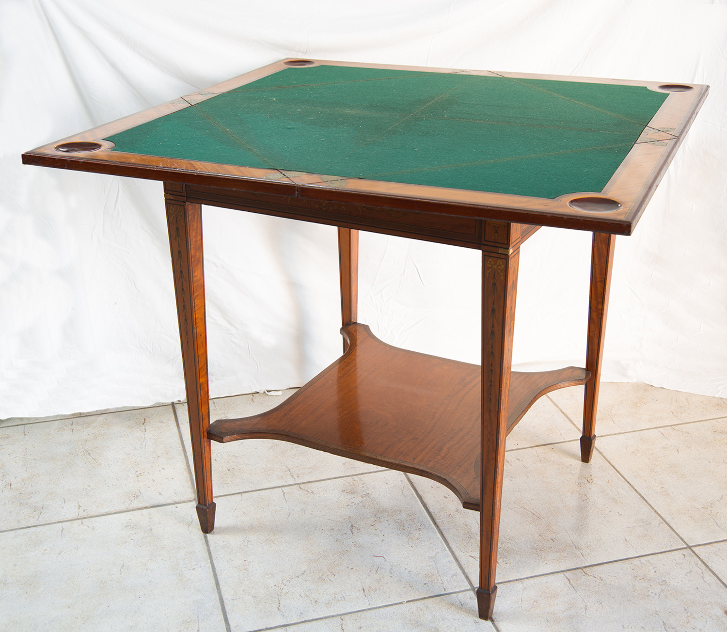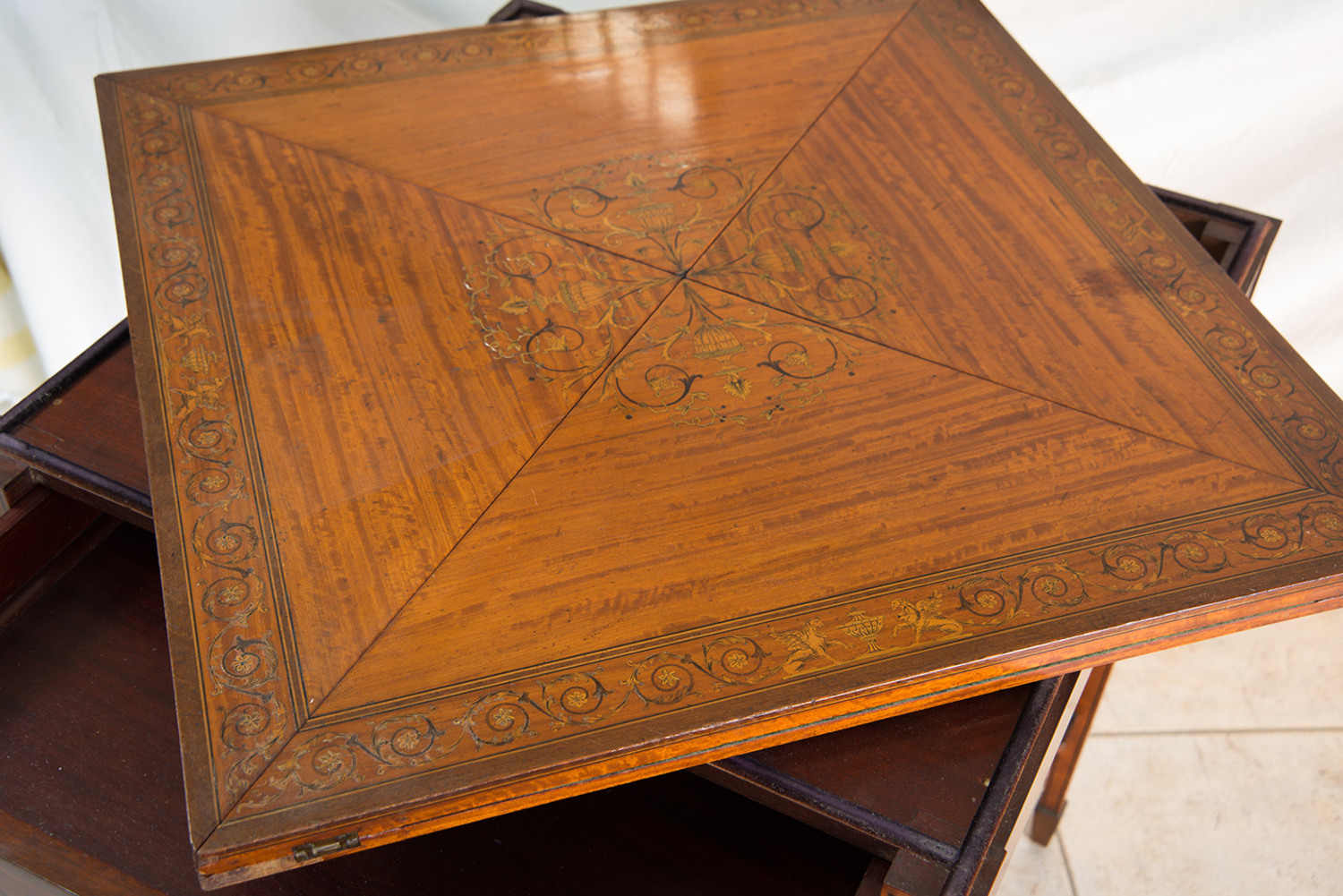 Tavolino da gioco a fazzoletto Eduardiano Inglese in Satinwood appartenente...