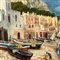 Dipinto olio su tela raffigurante scorcio di Marina Napoletana. Scuola italiana XX secolo. Artista anonimo.