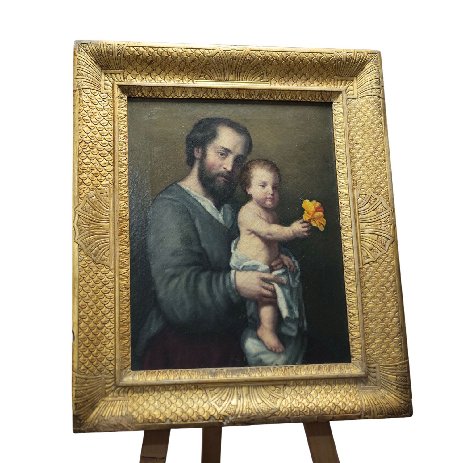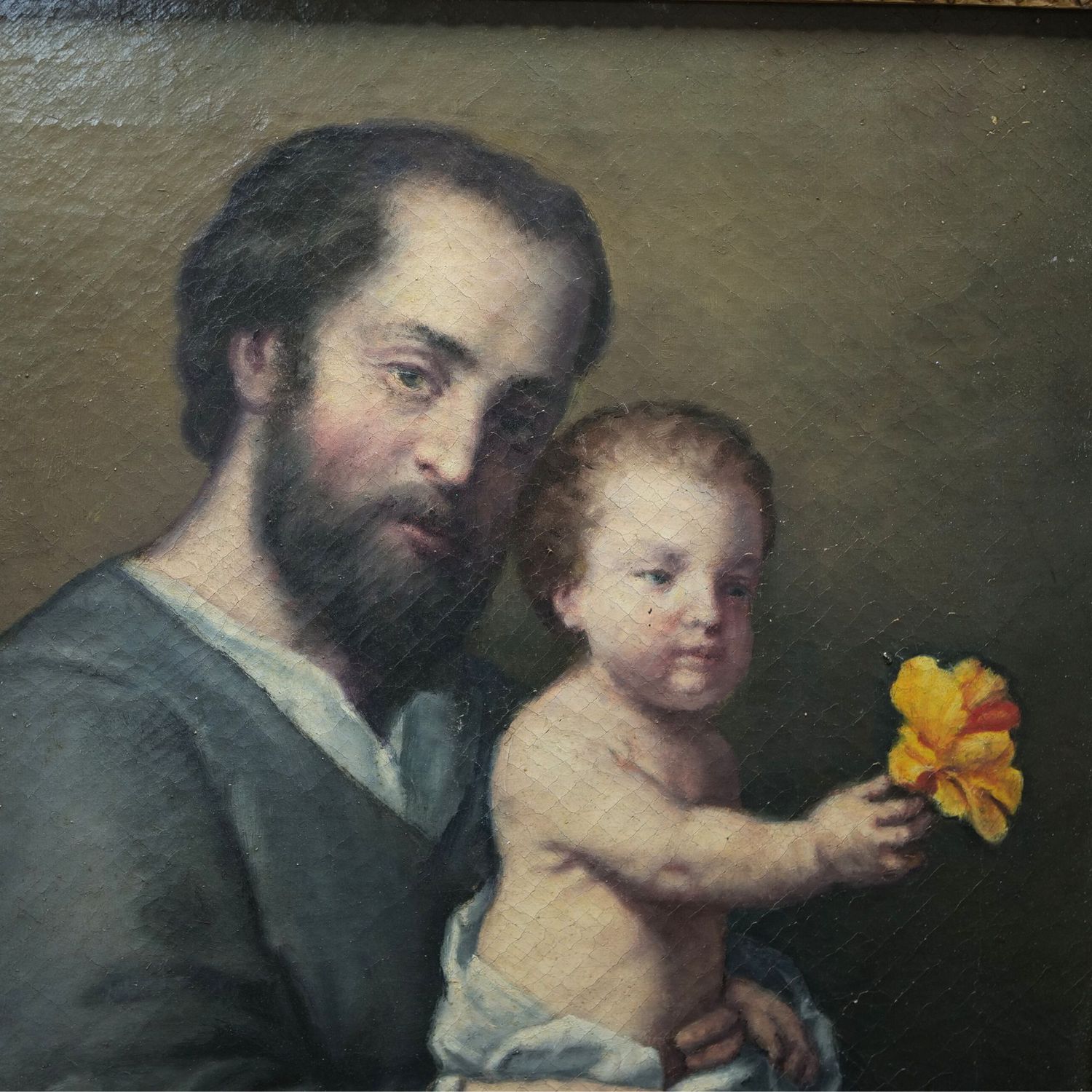Il dipinto ritrae un ritratto di uomo che tiene in braccio un bambino.
