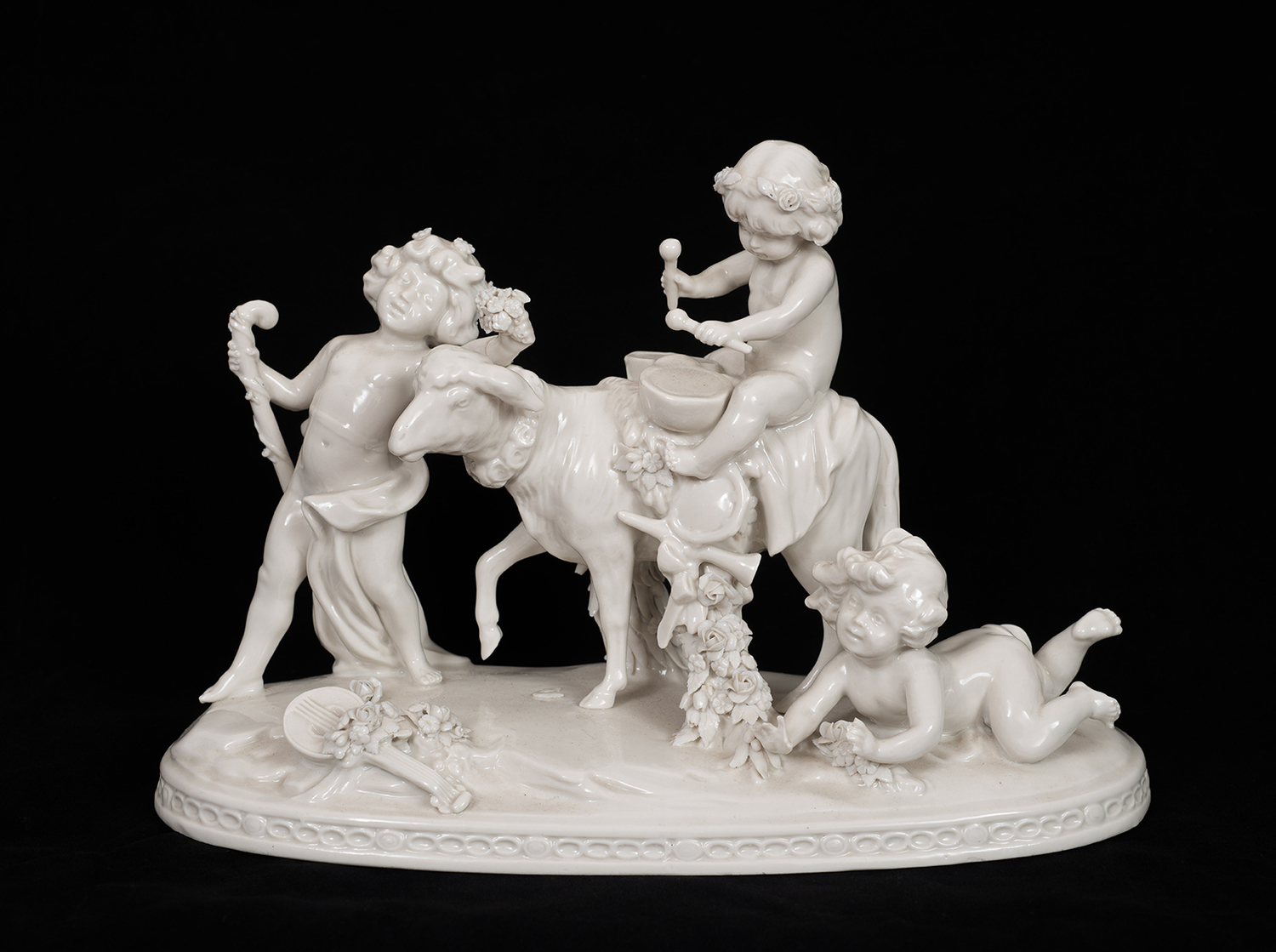 Il gruppo raffigura tre putti tra cui uno in sella ad una capra in atteggiamento gioioso.