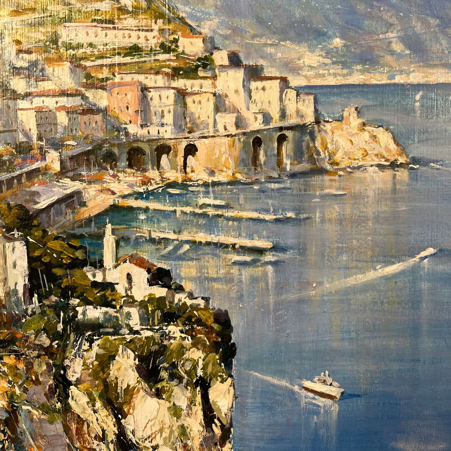 Dipinto olio su pannello, raffigurante Amalfi. Periodo 2012.