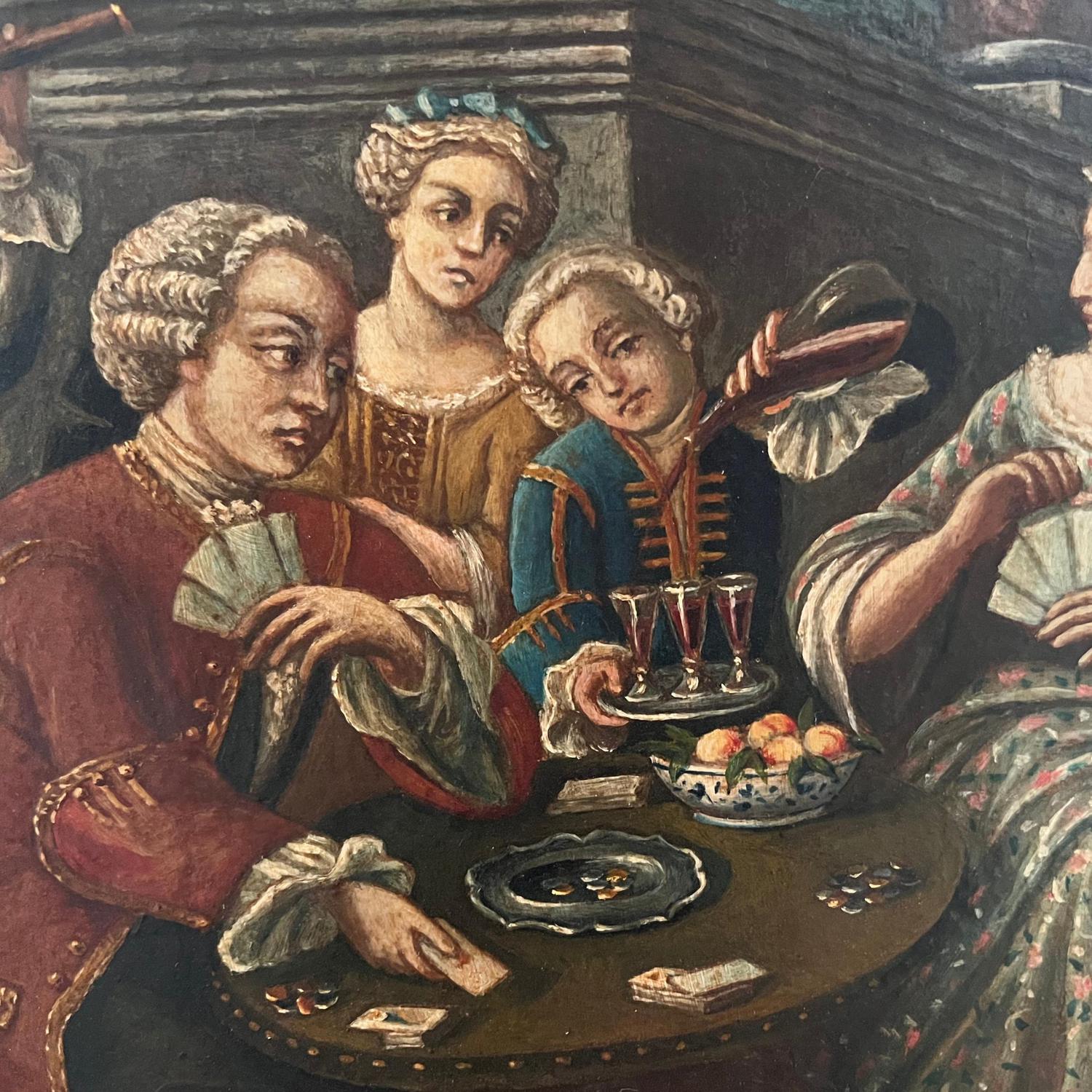 Dipinto olio su tavola in Cornice Dorata,raffigurante Gioco di carte. Scuola Francese XIX secolo.