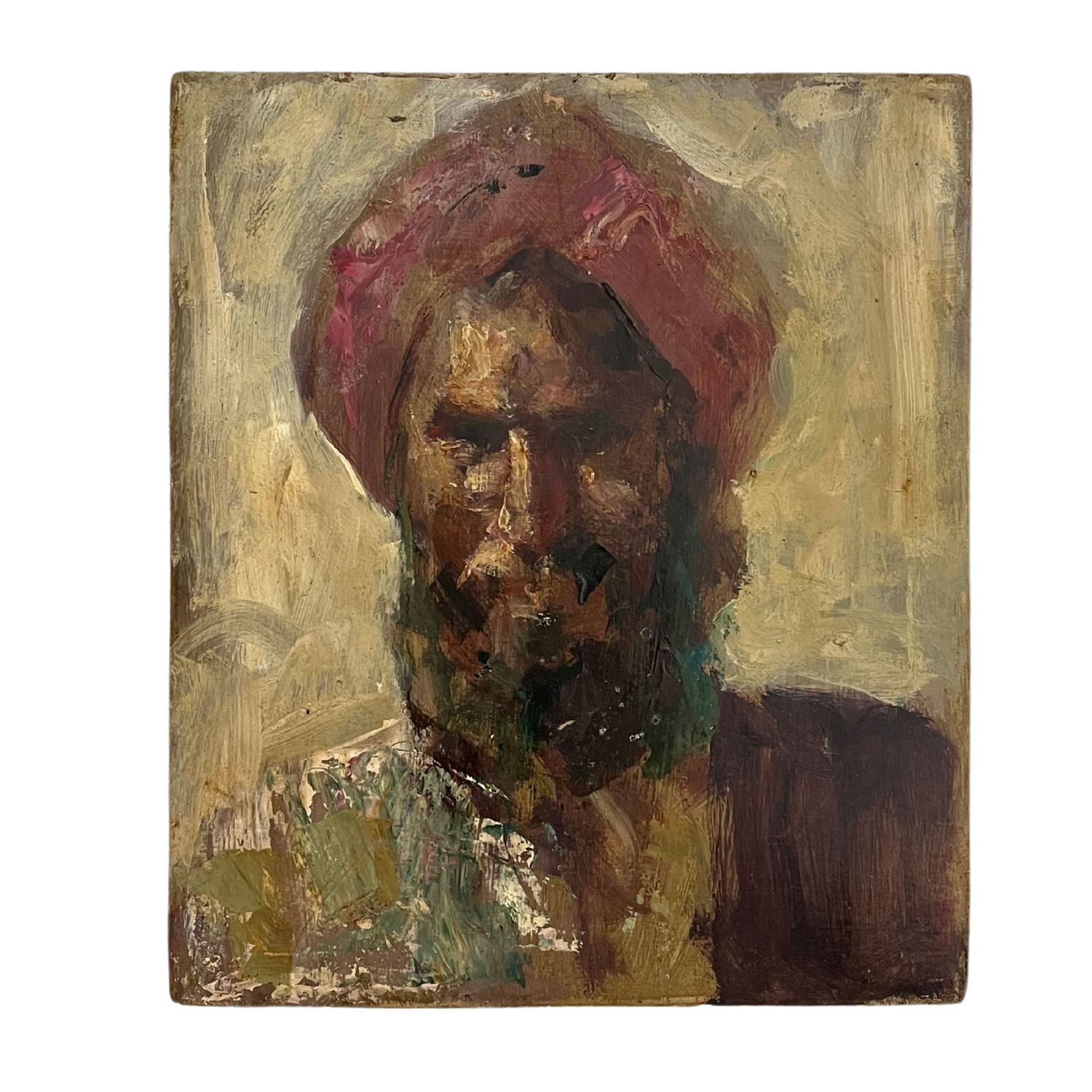 Dipinto olio su pannello periodo XX secolo, scuola Italiana raffigurante ritratto di Uomo Orientale.