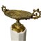 Coppia di alzate in bronzo dorate, finemente cisellato, sorrette da basi in marmo bianco. Periodo XIX secolo.