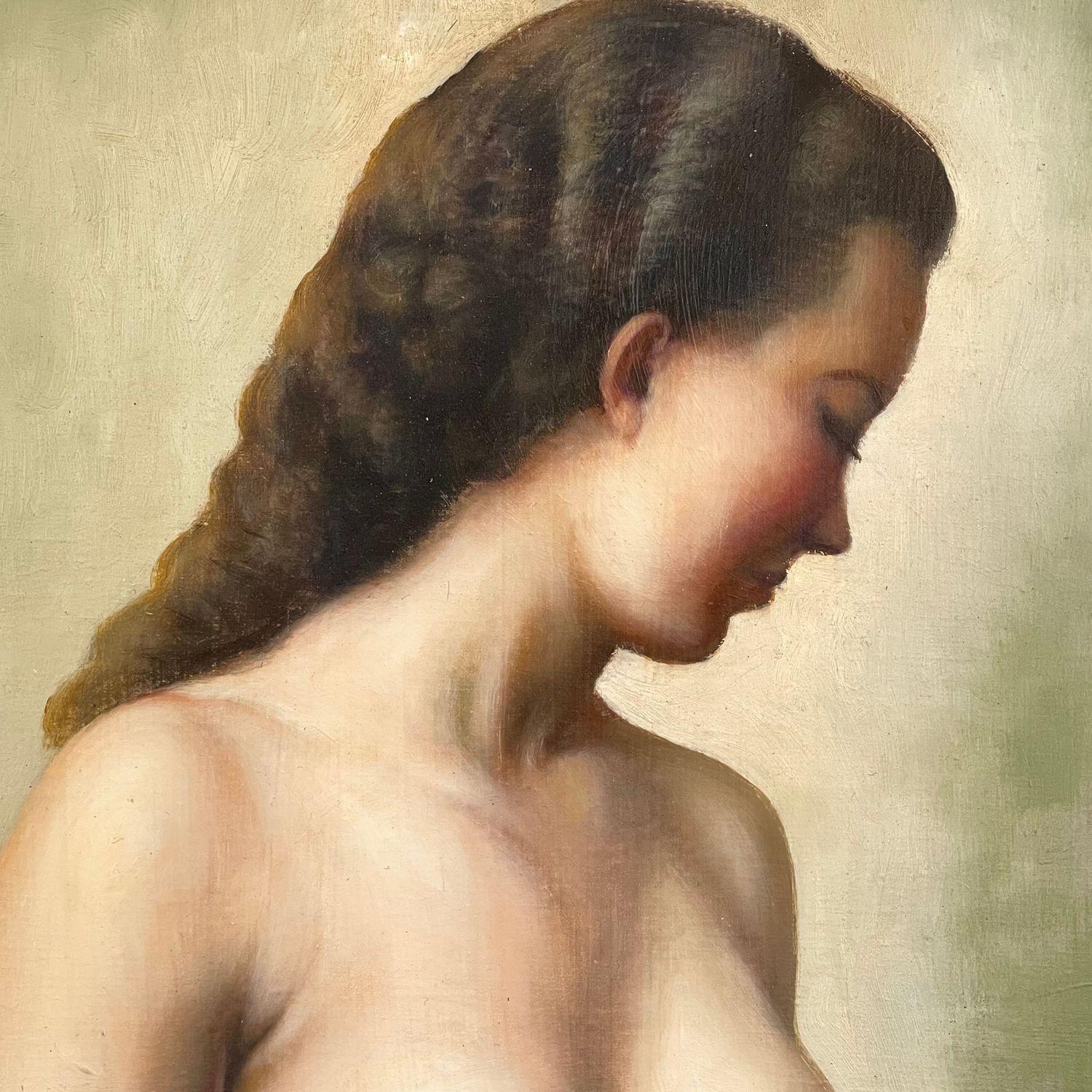 Dipinto olio su tela, raffigurante Ritratto di donna col seno in vista, Scuola Italiana, XX secolo.