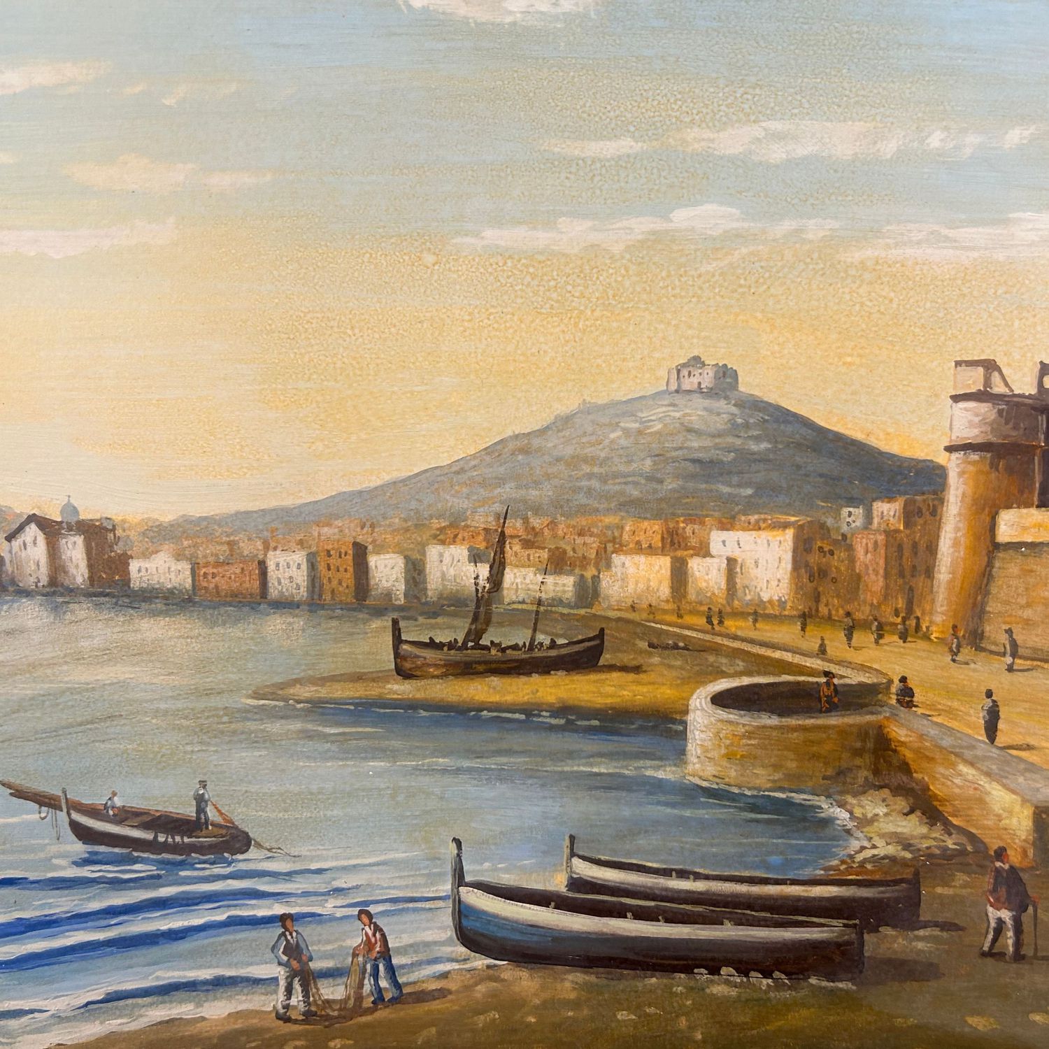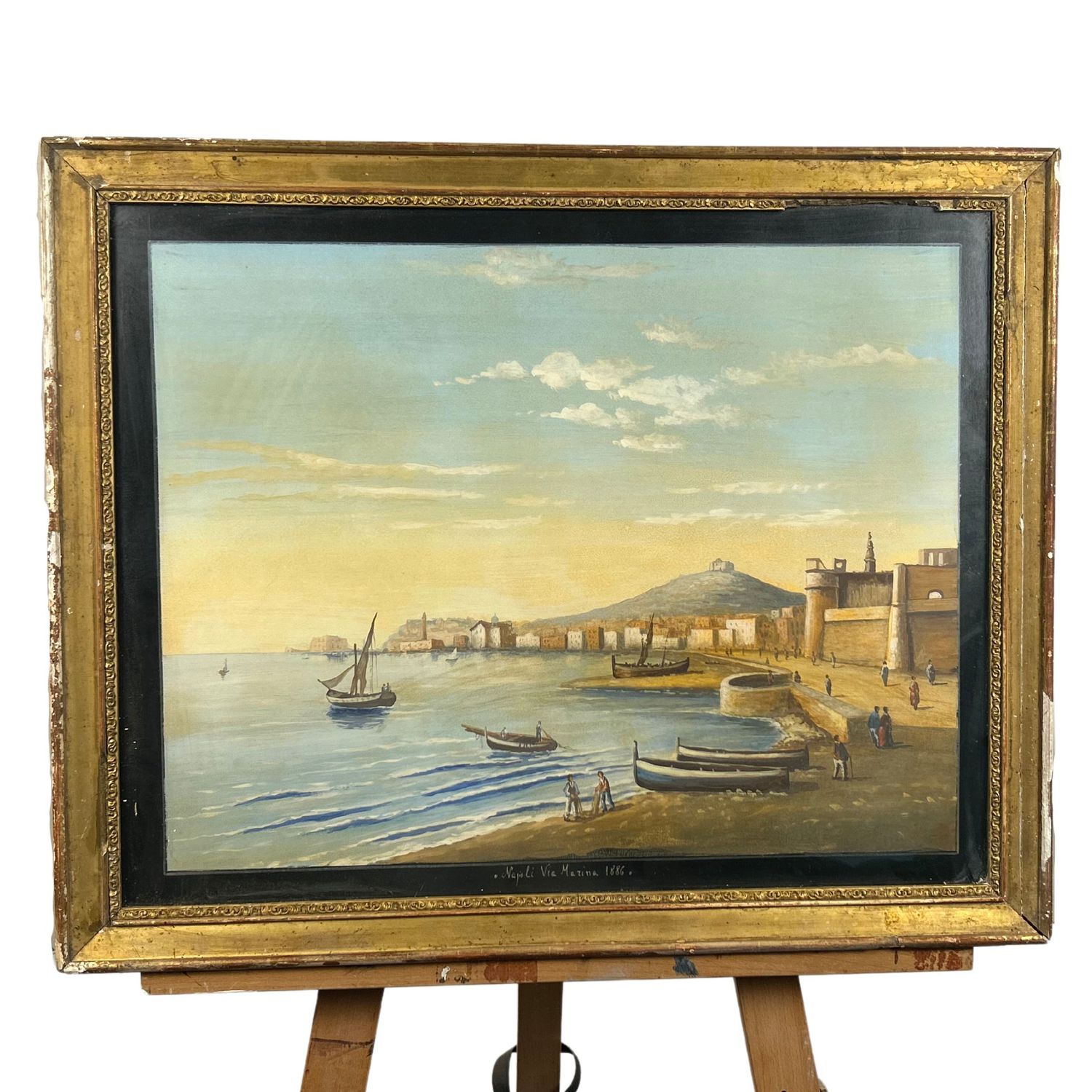 Dipinto Guazzo (tempera su carta) periodo XX secolo scuola Italiana raffigurante Veduta di Napoli Via Marina nel 1866.