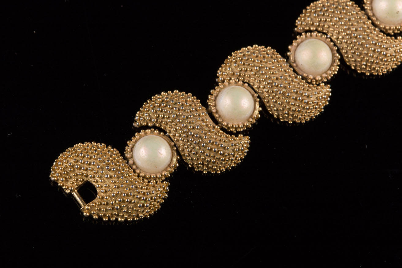 Trifari 1960'sAn elegant gilt bracelet with opaque pearls. l 18 cm