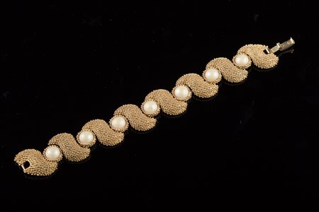 An elegant gilt bracelet with opaque pearls.