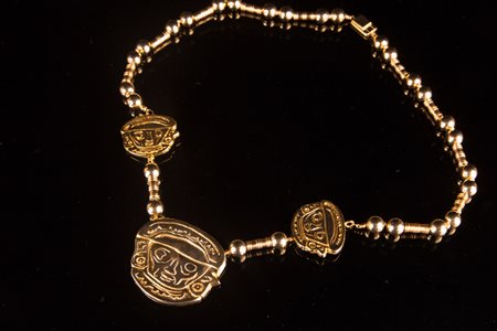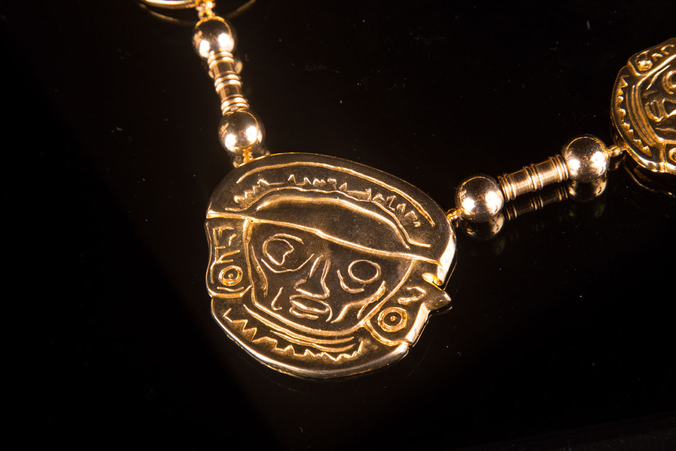 Luciano Soprani 1980'sA gilt metal necklace with three large Inca masks...