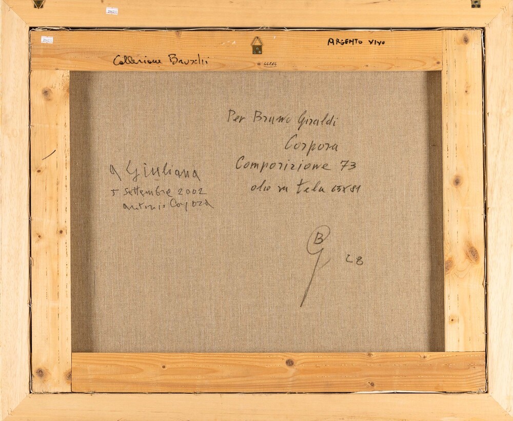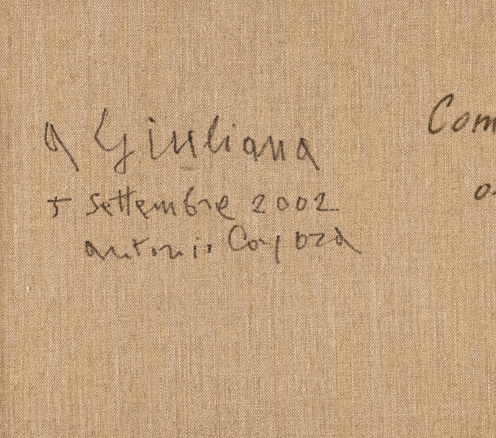 Opera accompagnata da autentica su fotografia a cura di Giovanni Di Summa, Archivio Antonio Corpora, Roma e firmata dall’artista
