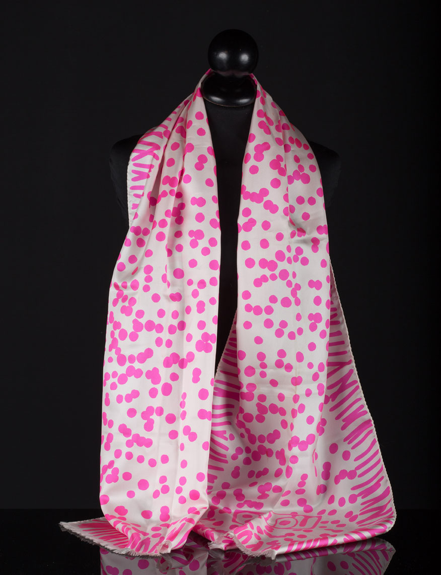 Patou 1980'sA white silk scarf with fushcia-coloured pattern. lxh...