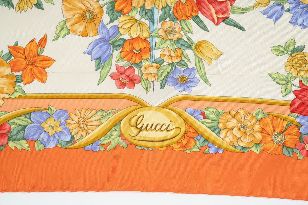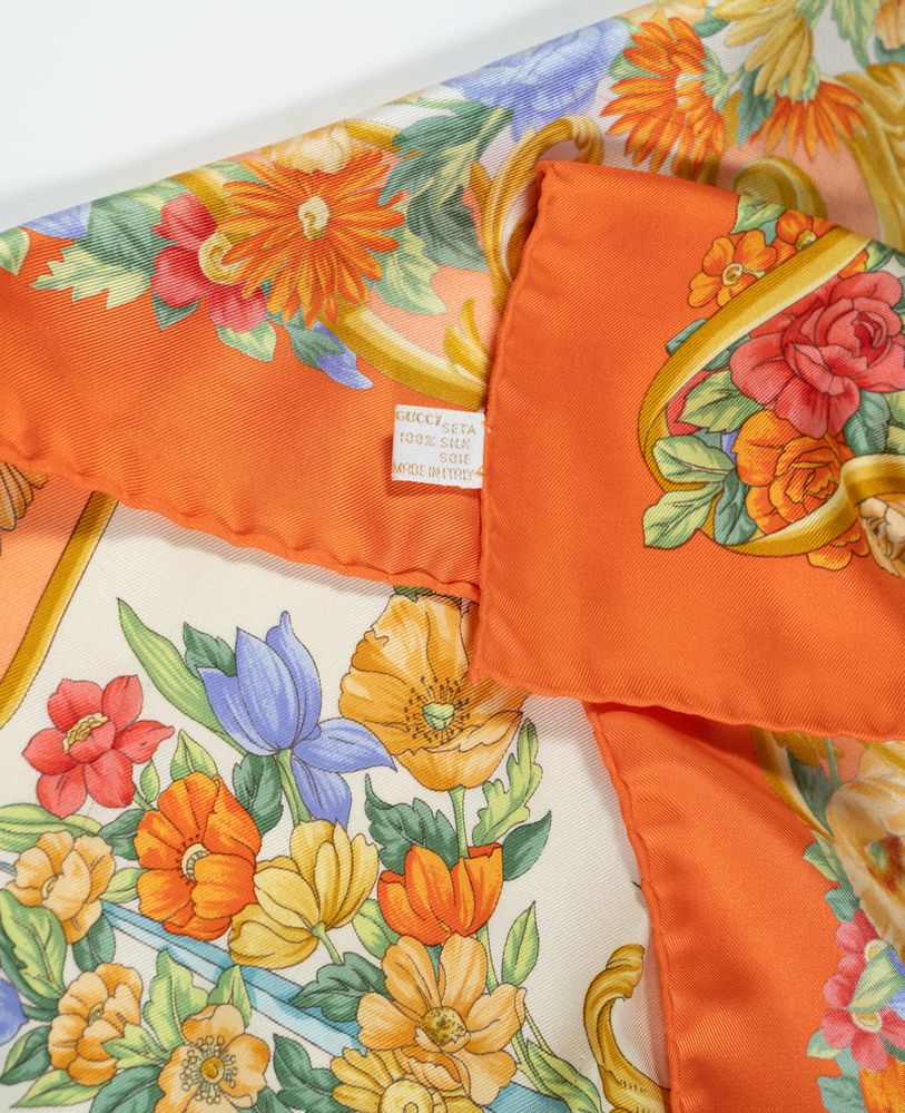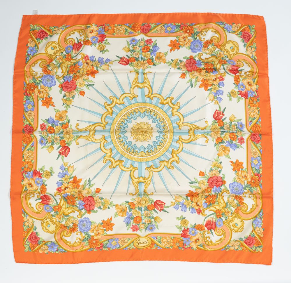 GUCCI Foulard Rosa dei venti in seta. Cm 87x87 (difetti)